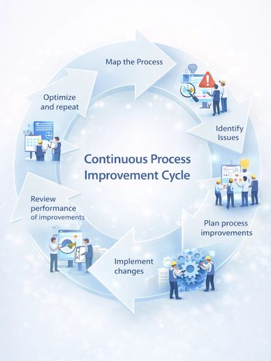 Prospere helps organizations drive measurable process excellence by transforming operational inputs into consistent, value-driven outcomes. Our consulting begins with a rigorous assessment of workflows, data, and performance metrics to establish a clear operational baseline. We identify inefficiencies and risks, applying structured methodologies and best practices to deliver scalable, practical improvements. With a strong focus on results, we define clear objectives, KPIs, and timelines, supporting implementation and performance monitoring to ensure sustainable gains in efficiency, cost, quality, and compliance.